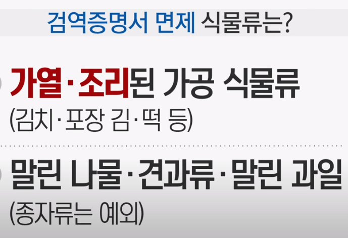 그럼 김치는 괜찮을까요? 포장처리된 김치의 경우는 가능합니다.