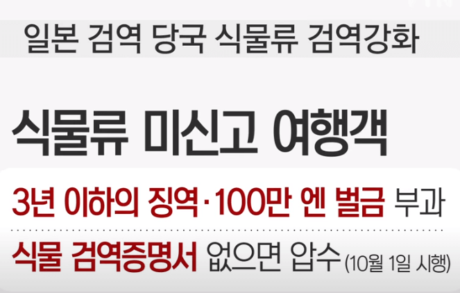 일본은 식물류에 관한 검역을 강화하여 이를 어길 시에는 3년 이하의 징역이나 천만 원의 벌금에 처할 수 있습니다.